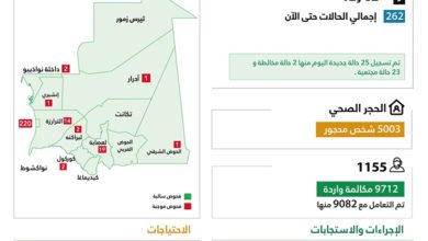 25 إصابة وثلاث وفيات جديدة بكورونا في موريتانيا