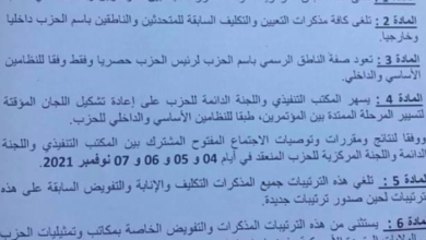 أعلن حزب الرباط الوطني من أجل الحقوق وبناء الأجال عن إلغاء كافة اللجان المركزية المؤقتة المقررة سابقا بين المؤتمرين وبشكل…