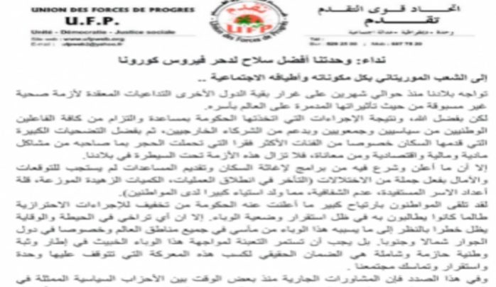 إن اتحاد قوى التقدم، في هذه الأوضاع الحرجة التي تجتازها البلاد يوجه نداء ملحا إلى الحكومة وإلى كل القوى الحية من أجل: