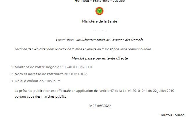 وسبق لوزارة الصحة أن أجرت مارس الماضي 11 صفقة تراض أو تفاهم مباشر بقية قاربت ملياري أوقية.
