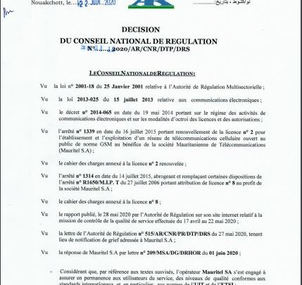 غرم المجلس الوطني للتنظيم (سلطة تنظيم الاتصالات بموريتانيا) شركات الاتصال العاملة في البلاد قرابة مليار أوقية قديمة، وذلك بناء على رصده خرقها للالتزاماتها التعاقدية.