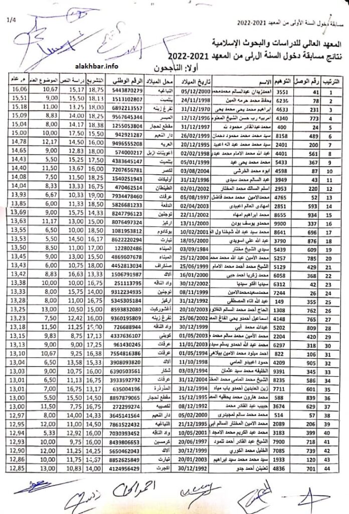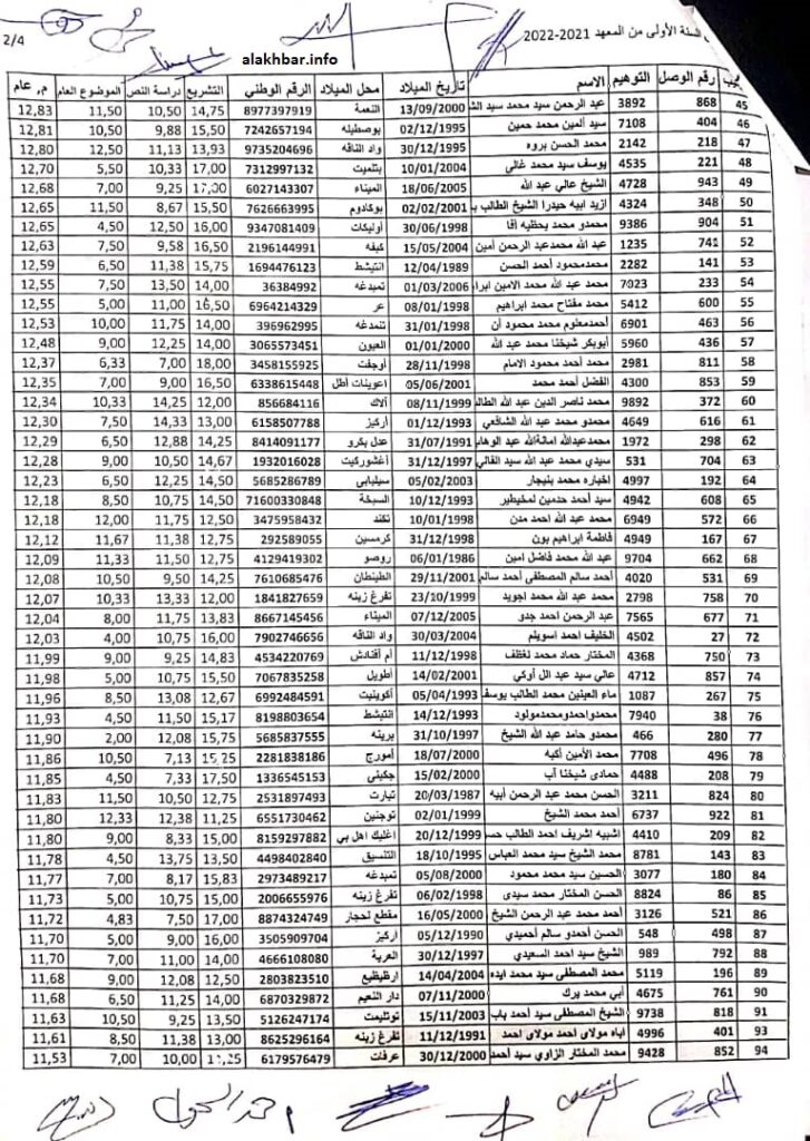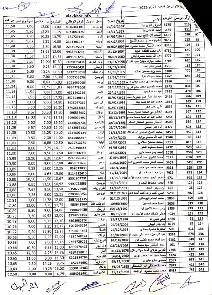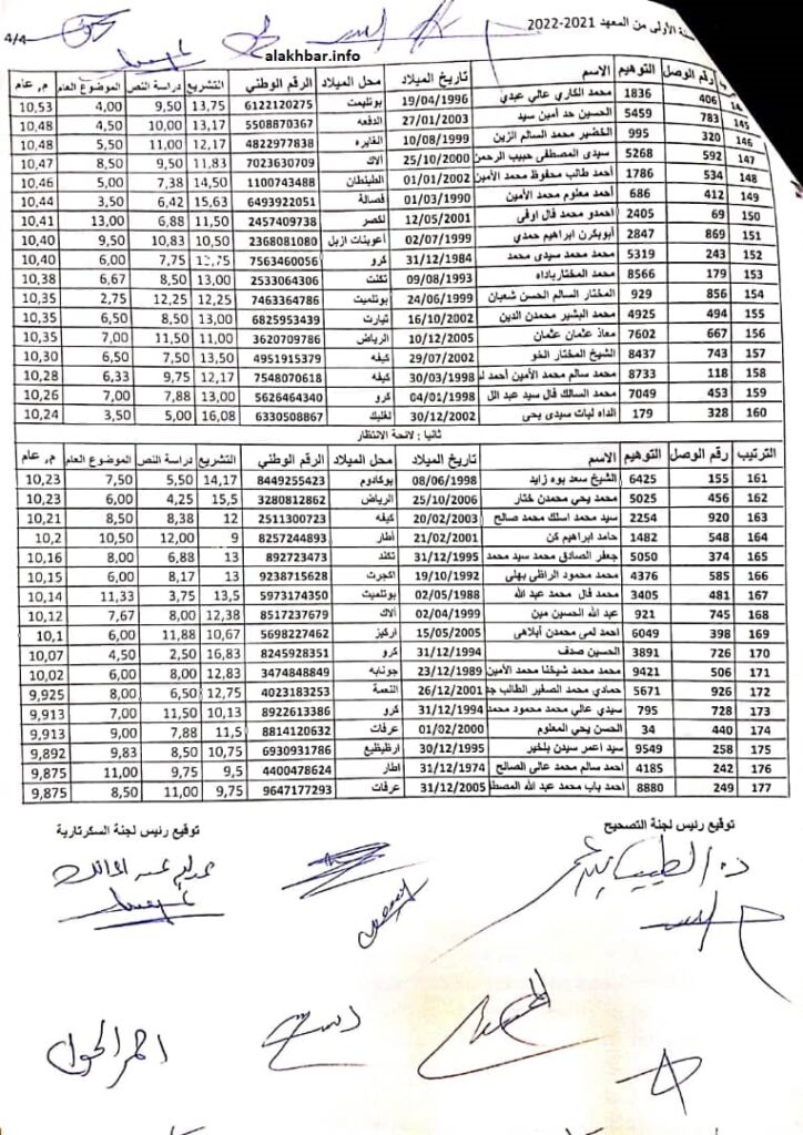 وضمت اللائحة أسماء 160 فائزا، إضافة لـ17 في لائحة الانتظار.