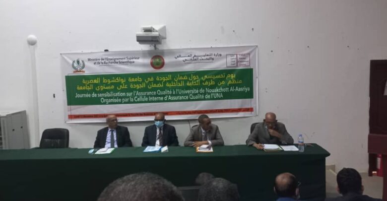نظمت الخلية الداخلية لضمان الجودة في جامعة نواكشوط العصرية اليوم الإثنين 13 دجمبر 2021 بقاعة المحاضرات في كلية العلوم والتقنيات يوما تحسيسا حول ضمان الجودة في الجامعة، تحت رئاسة نائب رئيس جامعة نواكشوط العصرية المكلف بالبحث العلمي وبحضور ومشاركة مدير التعليم العالي ورئيس السلطة الوطنية لضمان جودة التعليم العالي وعمداء كليات الجامعة وإدارة المعهد الجامعي المهني والطواقم المركزية التابعة لهم وكافة المدراء المركزيين ومدراء المراكز وجميع رؤساء الأقسام التربوية في جامعة نواكشوط العصرية.