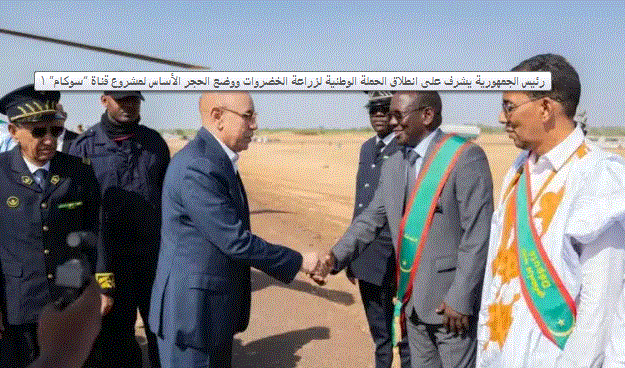 أشرف فخامة رئيس الجمهورية السيد محمد ولد الشيخ الغزواني من روصو، عاصمة ولاية اترارزة، على انطلاق الحملة الوطنية لزراعة الخضروات لموسم 2025–2026، ووضع الحجر الأساس لمشروع قناة سوكام.